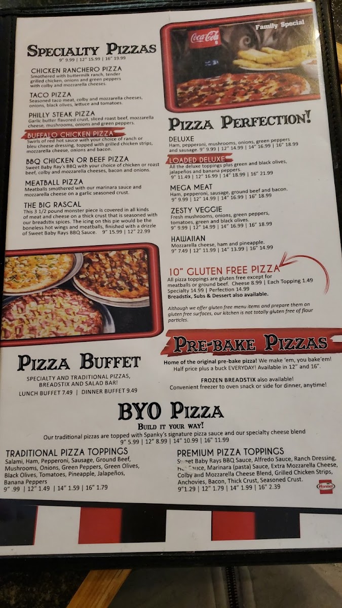 Looking for a place where great pizza and a warm, inviting atmosphere meet? Look no further than Spanky's Pizza & Restaurant Menu. Nestled at 1042 W Main St in Fremont, MI, this local gem serves up a variety of delicious options, from cheesy, oven-baked pizzas to hearty pasta dishes that will leave you satisfied. Whether you're craving a classic pepperoni pizza, a fresh salad, or a savory sandwich, there's something for everyone here. The menu features a mix of traditional favorites and unique creations, all made with fresh ingredients and served with a smile. Stop by and enjoy a meal with friends or family - you won't leave hungry!